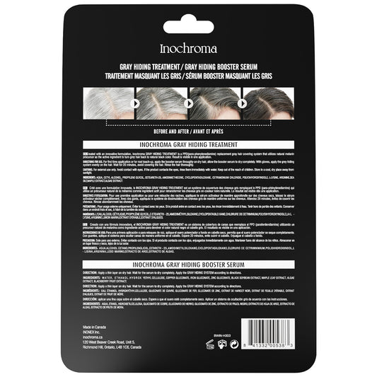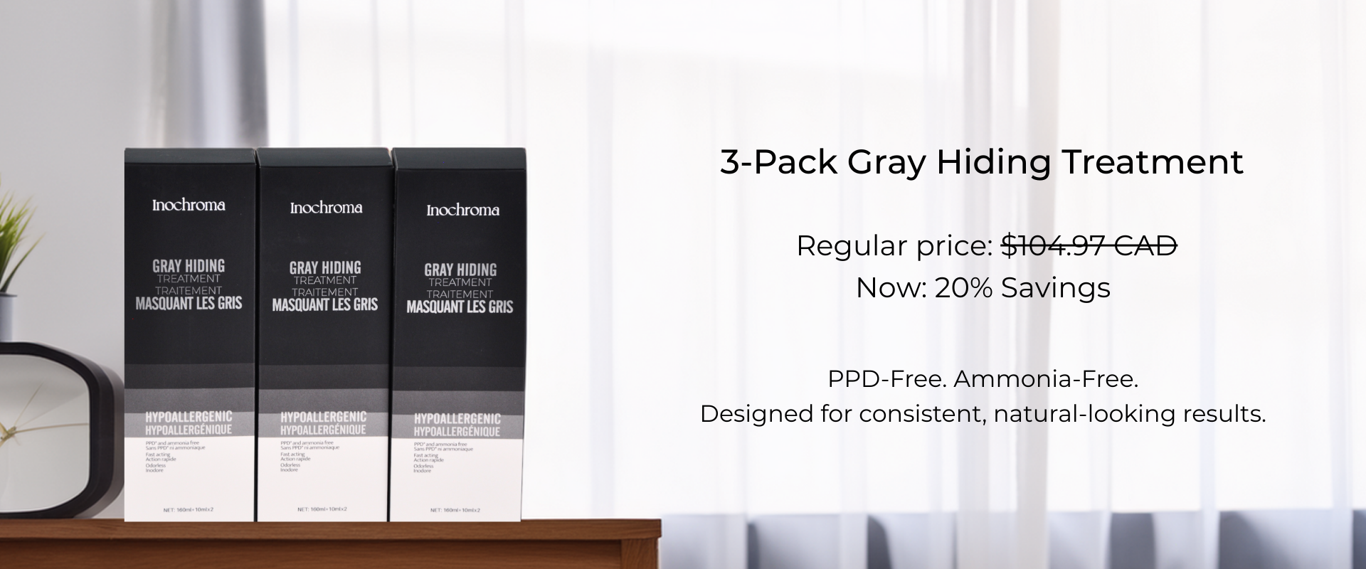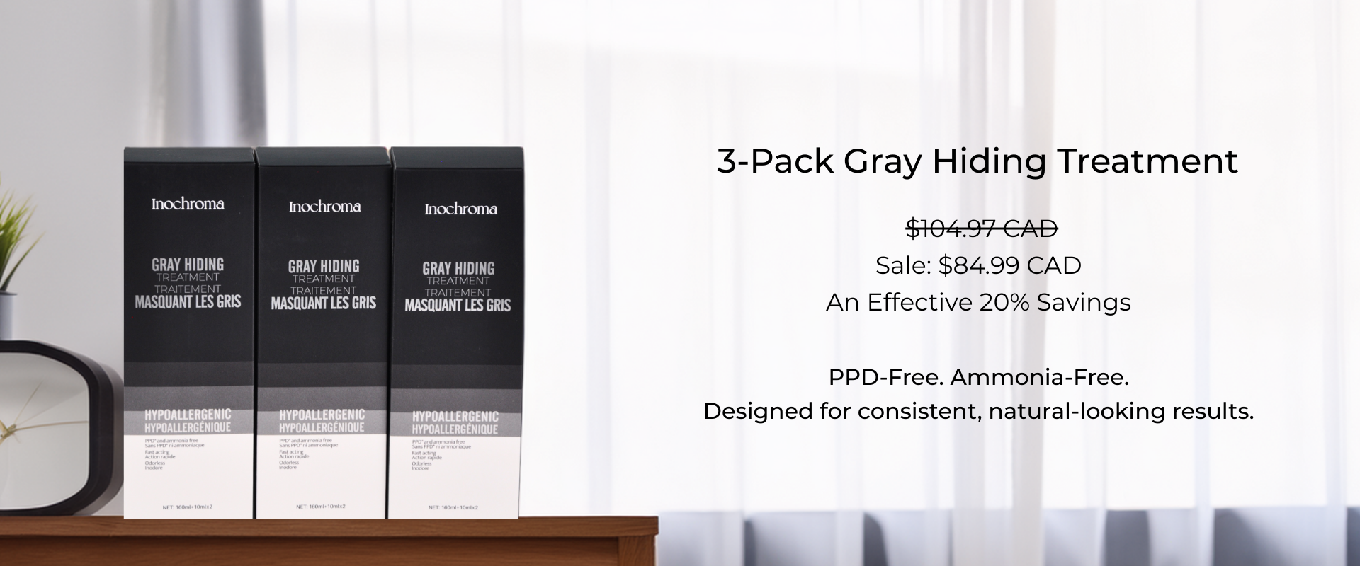 The Inochroma Grey Hiding Treatment is designed for users sensitive to other dyes and is PPD-free. Please perform a 48-hour patch test before full application.